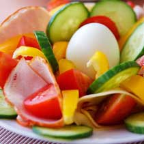 Fruit salad is a dish consisting of various kinds of fruit, sometimes served in a liquid, either in their own juices or a syrup. When served as an appetizer or as a dessert, a fruit salad is sometimes known as a fruit cocktail or fruit cup. In different forms fruit salad can be served as an appetizer, a side-salad, or a dessert.